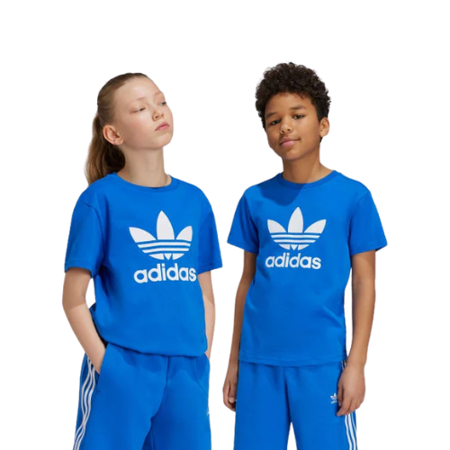 Bold royal blue tee with colorful Trefoil branding – statement piece for any wardrobe.