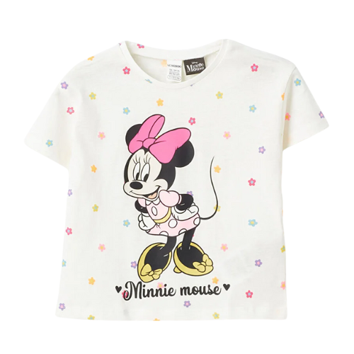 LCWAKIKI White Minnie Mouse T-Shirt is crafted with soft cotton featuring Minnie Mouse print, ideal for daily wear. Sizes 3-7 years.