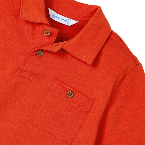 Add color to your boy’s wardrobe with this MAYORAL Orange Polo. Crafted from soft, breathable cotton, it combines a neat fit with cheerful energy. Great for both casual and semi-formal occasions.