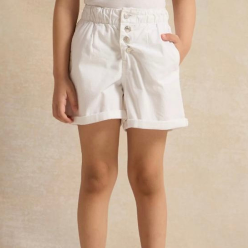 REDTAG White Four Button Shorts are crafted with soft cotton and four-button styling, suitable for summer casual wear. Sizes 2-8 years.